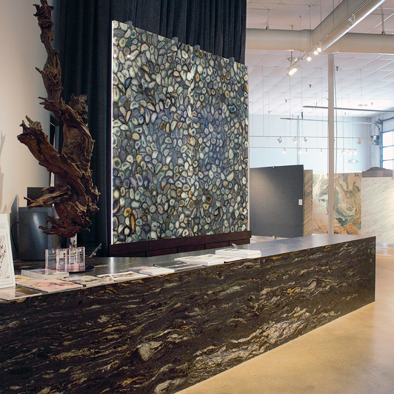 Our manufacturing facility utilizes state-of-the-art, custom CNC machines, edging machines, and robotic water-jet machines. We also employ environmentally friendly practices such as recycling the water used in our fabrication process.